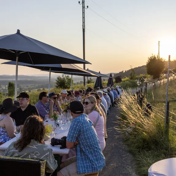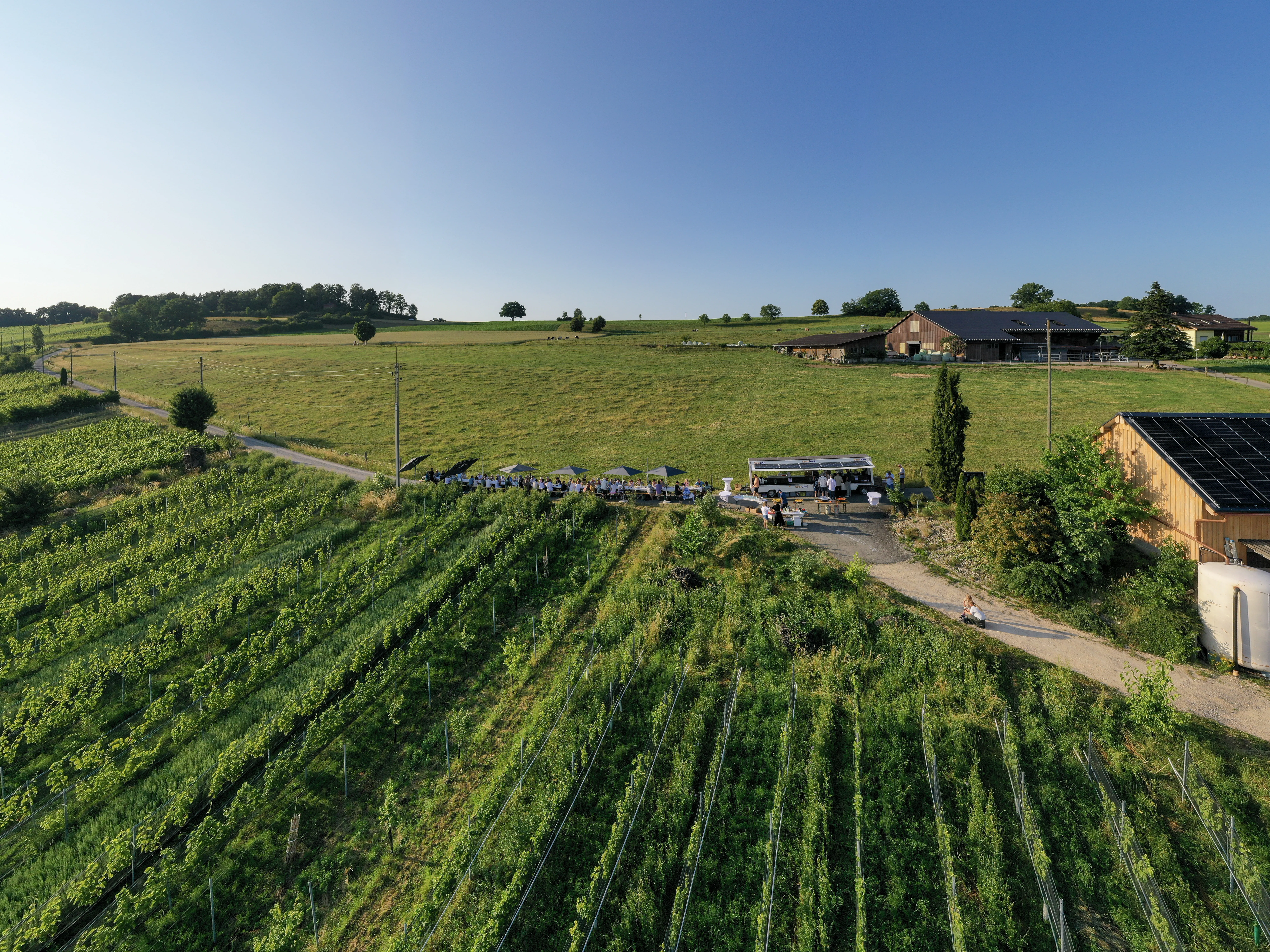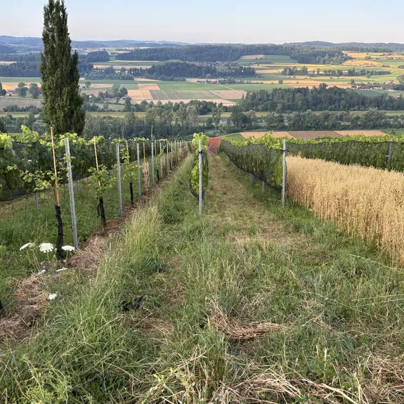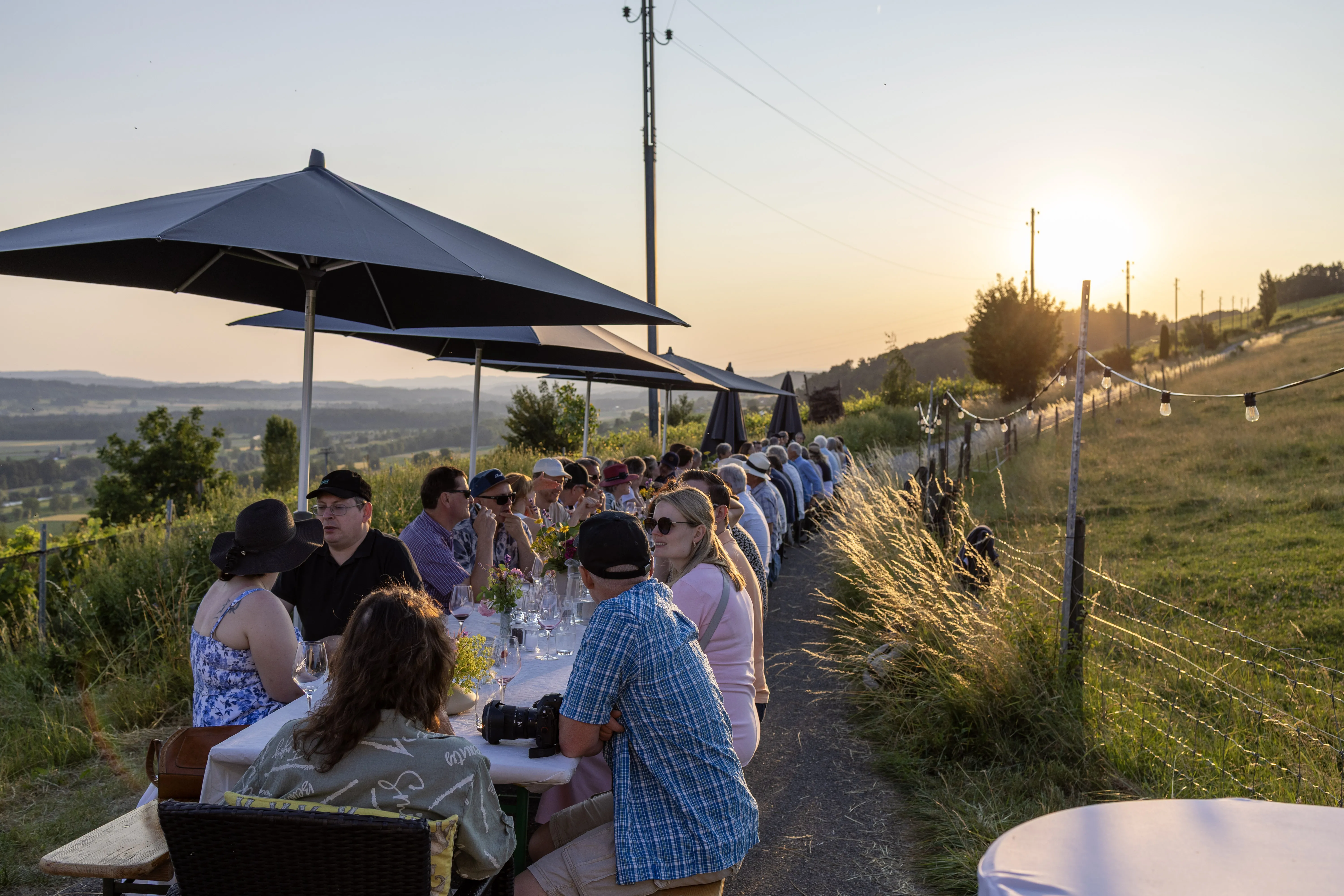 Diese neue Lebensrealität ist in unseren Weingärten ersichtlich und fühlbar. Aber auch im Glas schmeckbar... Und das möchten wir mit Ihnen bei verschiedenen Anlässen zelebrieren, wie beim Wine & Dine im Februar, beim Biodiversitätstag im Juni, oder ganz speziell am 7. September 2024: Dieser Samstag, am Beginn der Weinlese, gehört ganz unseren "Wilden Weingärten"! Flanieren Sie genüsslich durch diese Weingärten, kosten Sie die verschiedenen reifen Traubensorten und verkosten Sie dazu die entsprechenden Weinpersönlichkeiten. Als Abschluss können Sie am "langen Tisch" diesen Erlebnistag ausklingen lassen. Dazu werden wir Ihnen unseren ersten Jahrgang "Wilder Weingarten" ausschenken, einen ausdrucksstarken Rotwein, der unser 30- jähriges Schaffen widerspiegelt...