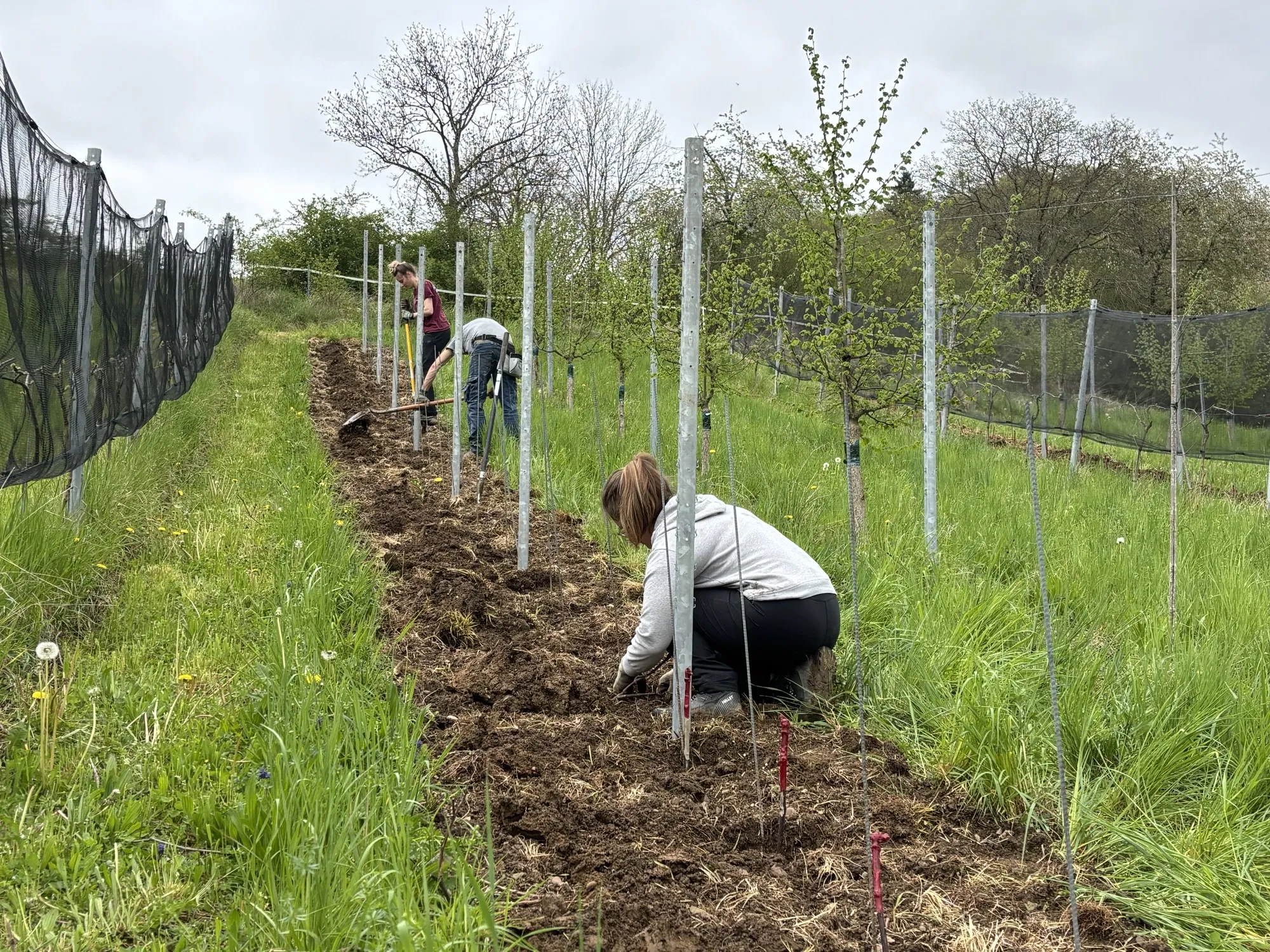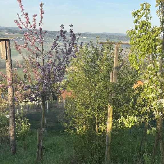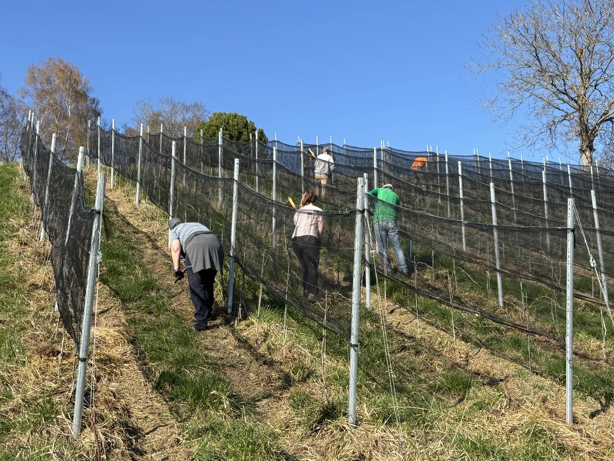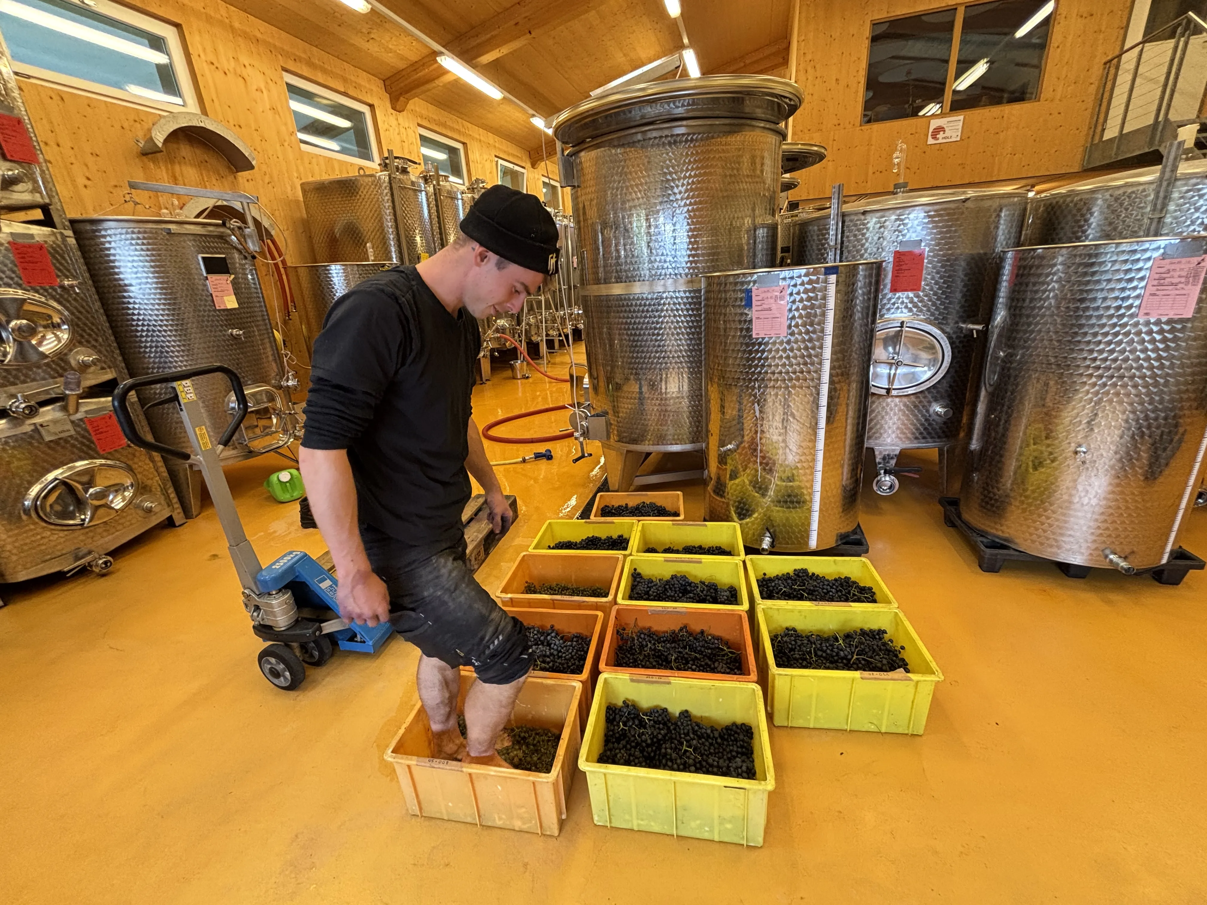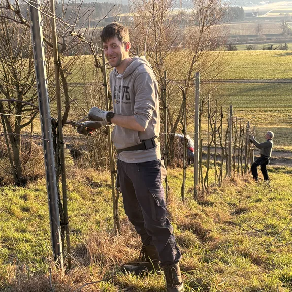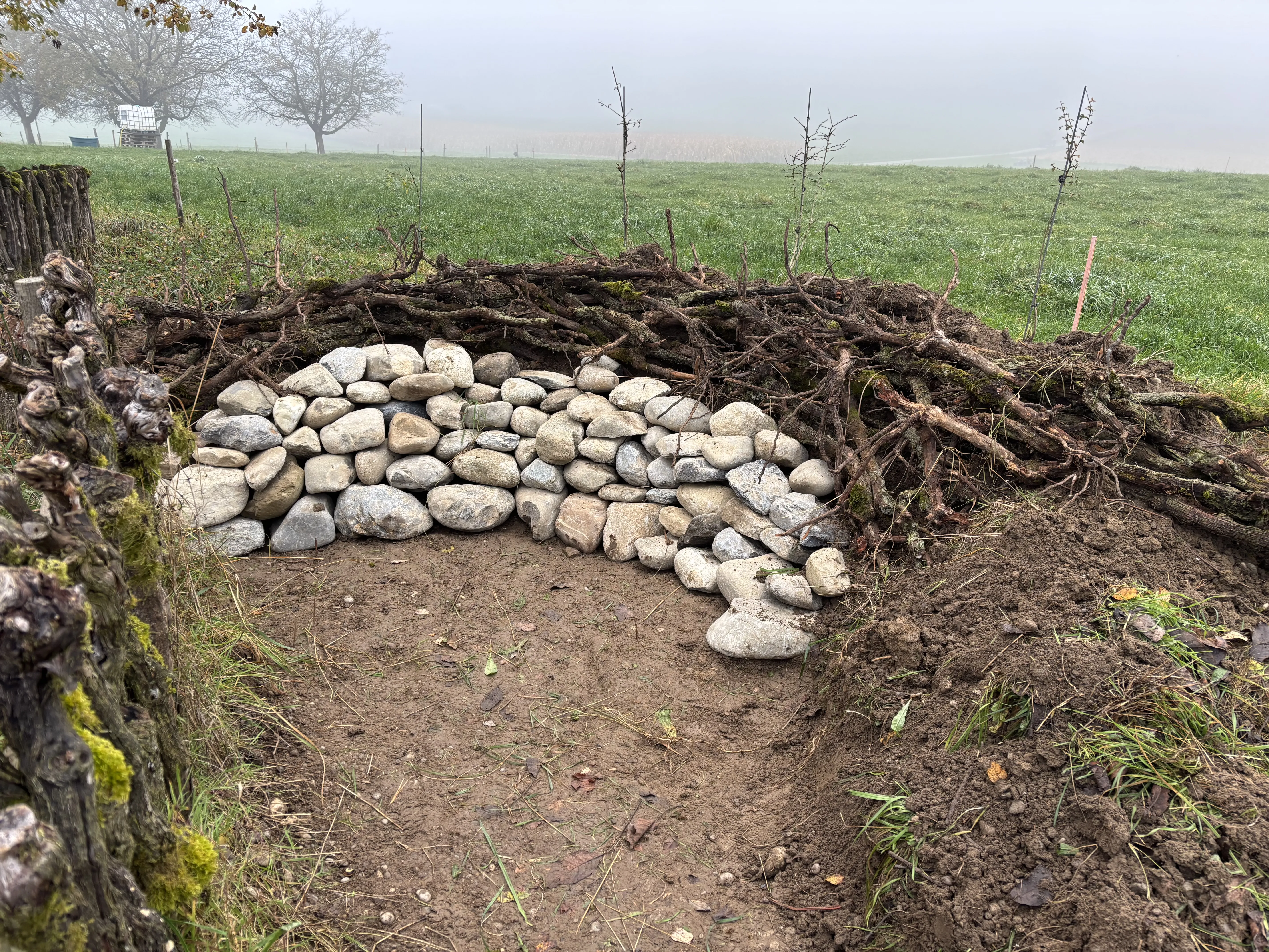 Als biologisch dynamisch funktionierendes Weingut sind wir selber ein kleiner Mikrokosmos geworden mit einem ganz eigenen Mikrobiom: Milliarden von Bodenlebewesen, Pilzen und Bakterien halten unsere Böden gesund und fruchtbar. Dank der renaturierten und gut vernetzten Biodiversität, kombiniert mit dem Ausbau unserer Mischkulturen, leben zig Millionen Insekten mit uns. Diese garantieren uns eine optimale Balance zwischen möglichen Schadinsekten und Nutzinsekten. Zugleich ermöglichen sie das Überleben von vielen anderen Tieren, die mithelfen unsere Ressourcen zu schonen: Fledermäuse, Mauswiesel, Eidechsen und Ringelnattern, Vögel oder andere grössere Wildtiere. Sie alle helfen entscheidend mit, unsere internen Lebenskreisläufe zu stärken und gesund zu halten. Und wir als Team von 11 motivierten Menschen versuchen begleitend, diese Lebensgrundlagen für alle "Mitarbeiter" mitzugestalten und sicher zu stellen. Dazu gehört die ausgewogene Biodiversitätspflege genauso wie der angepasste Rebschnitt, das Herstellen und Ausbringen des eigenen Kompost oder Pflanzenstärkungsmitteln, die individuellen Pflegemassnahmen während der Vegetationsphase, das Ernten der verschiedenen Trauben- Früchte- Nüsse- und Getreide, oder das schonende Vinifizieren unserer Charakterweine.