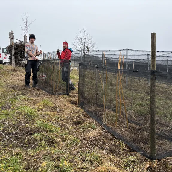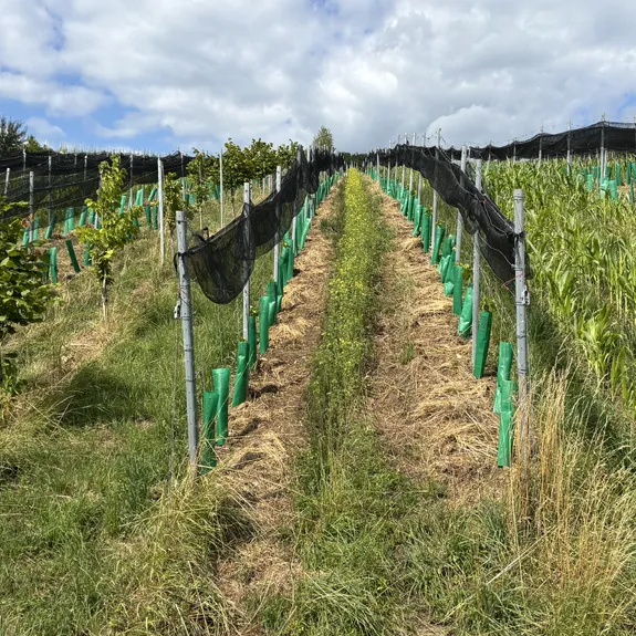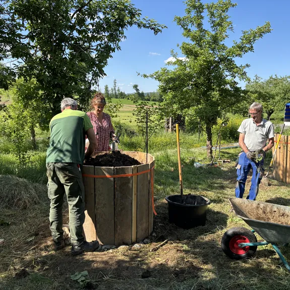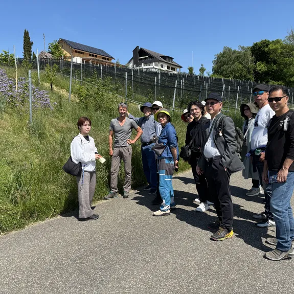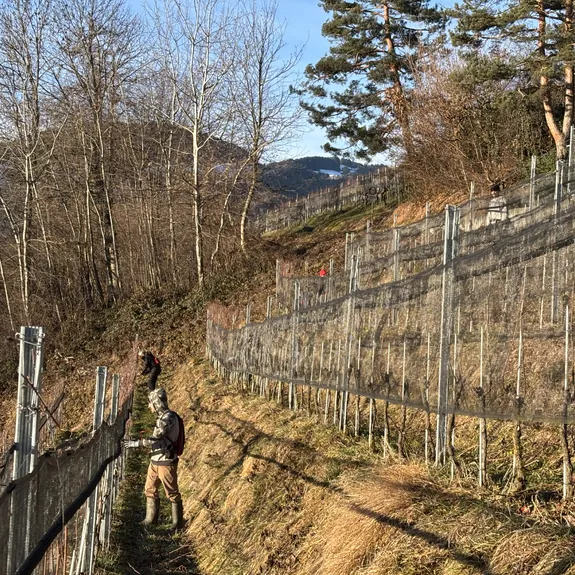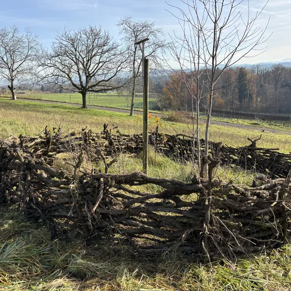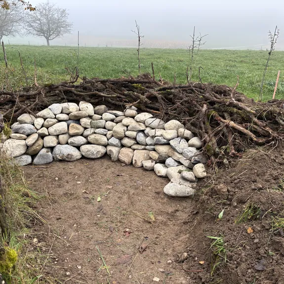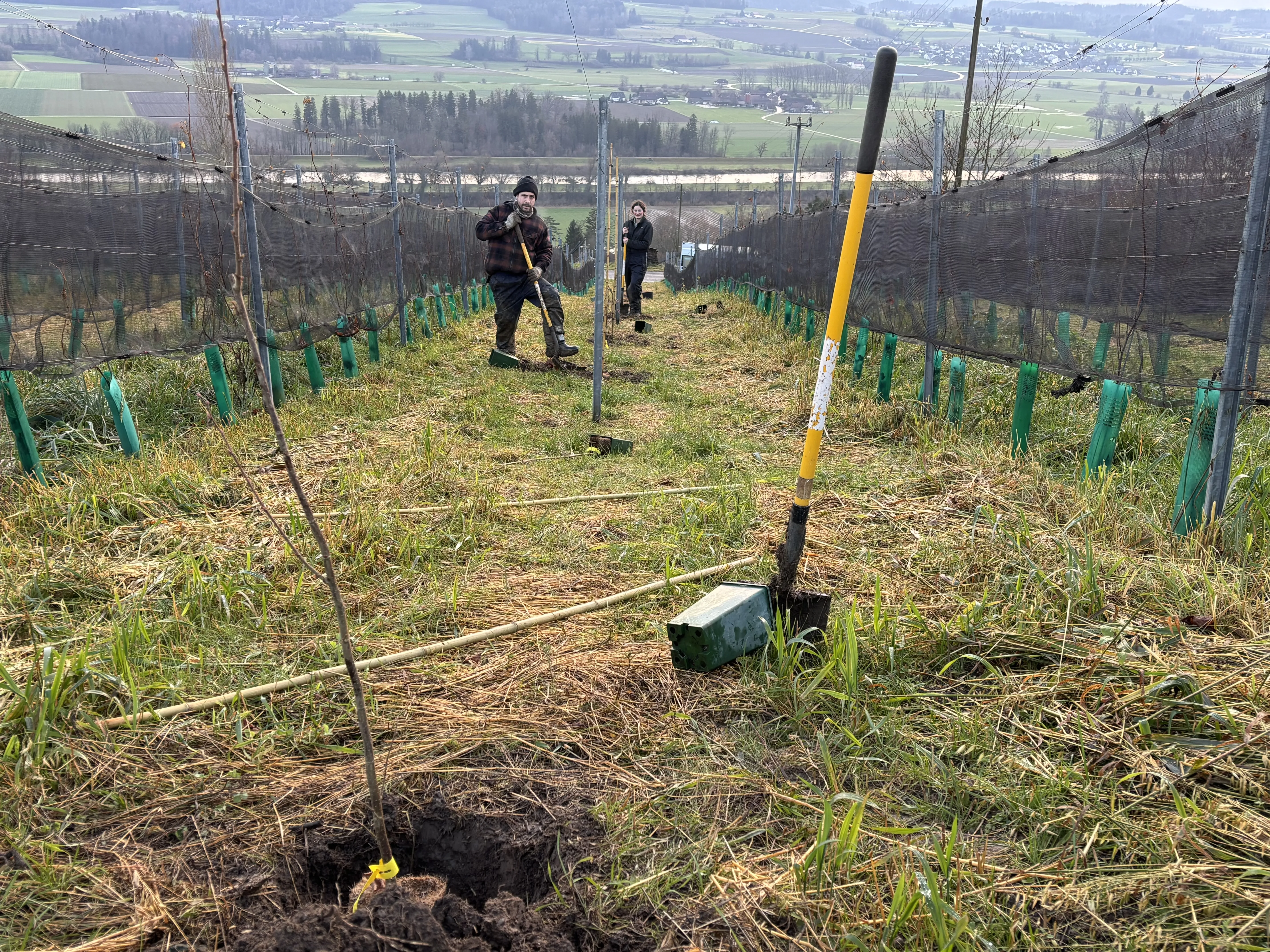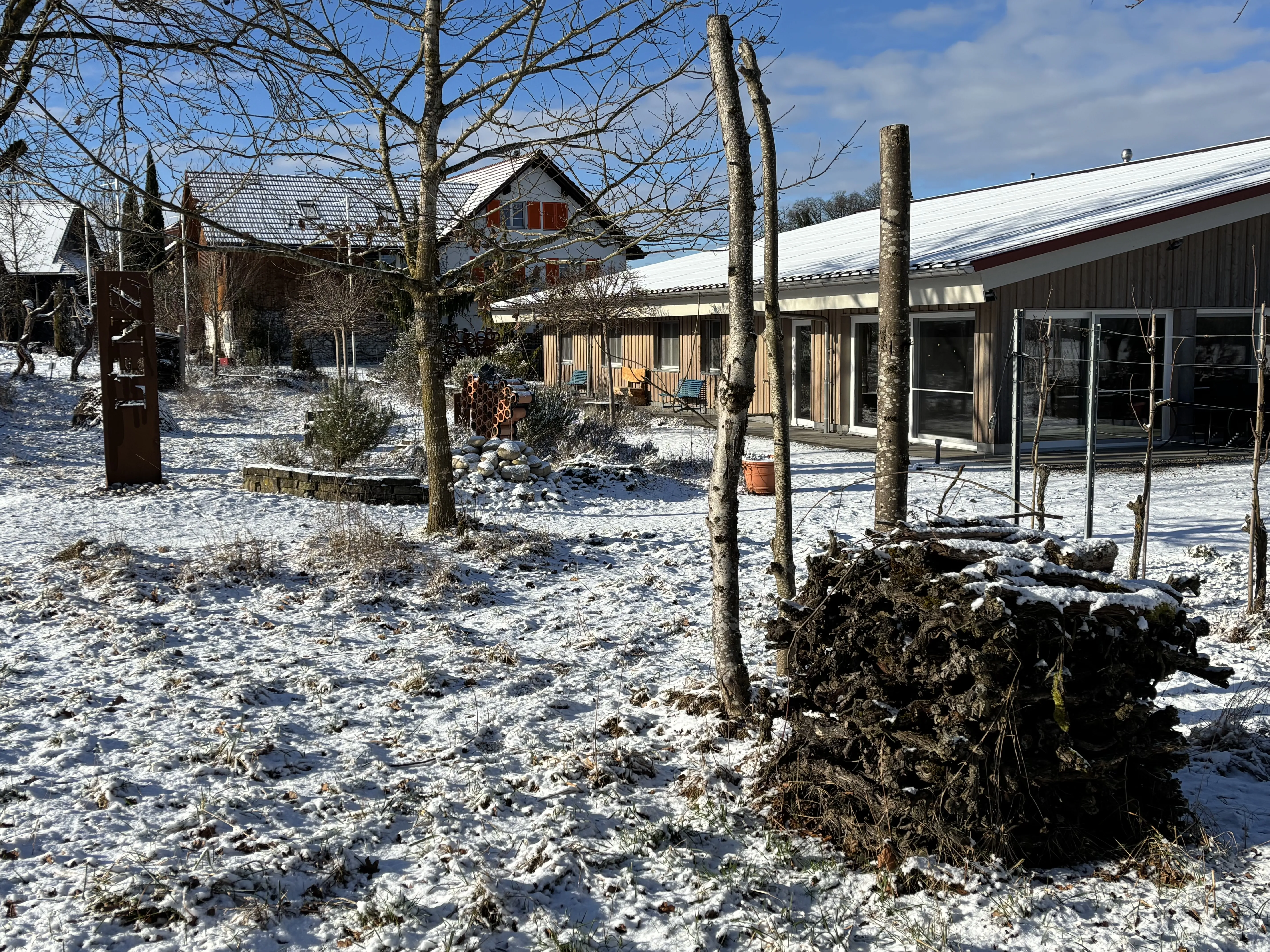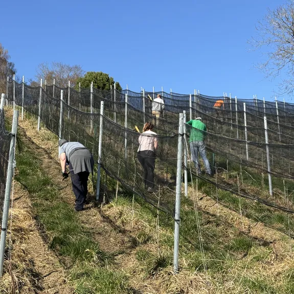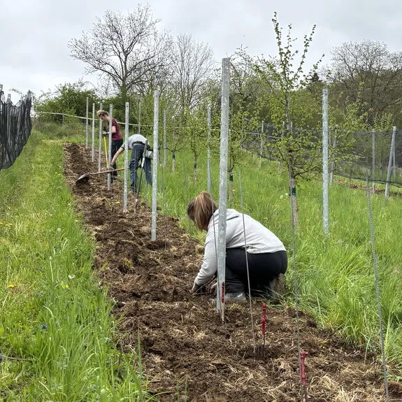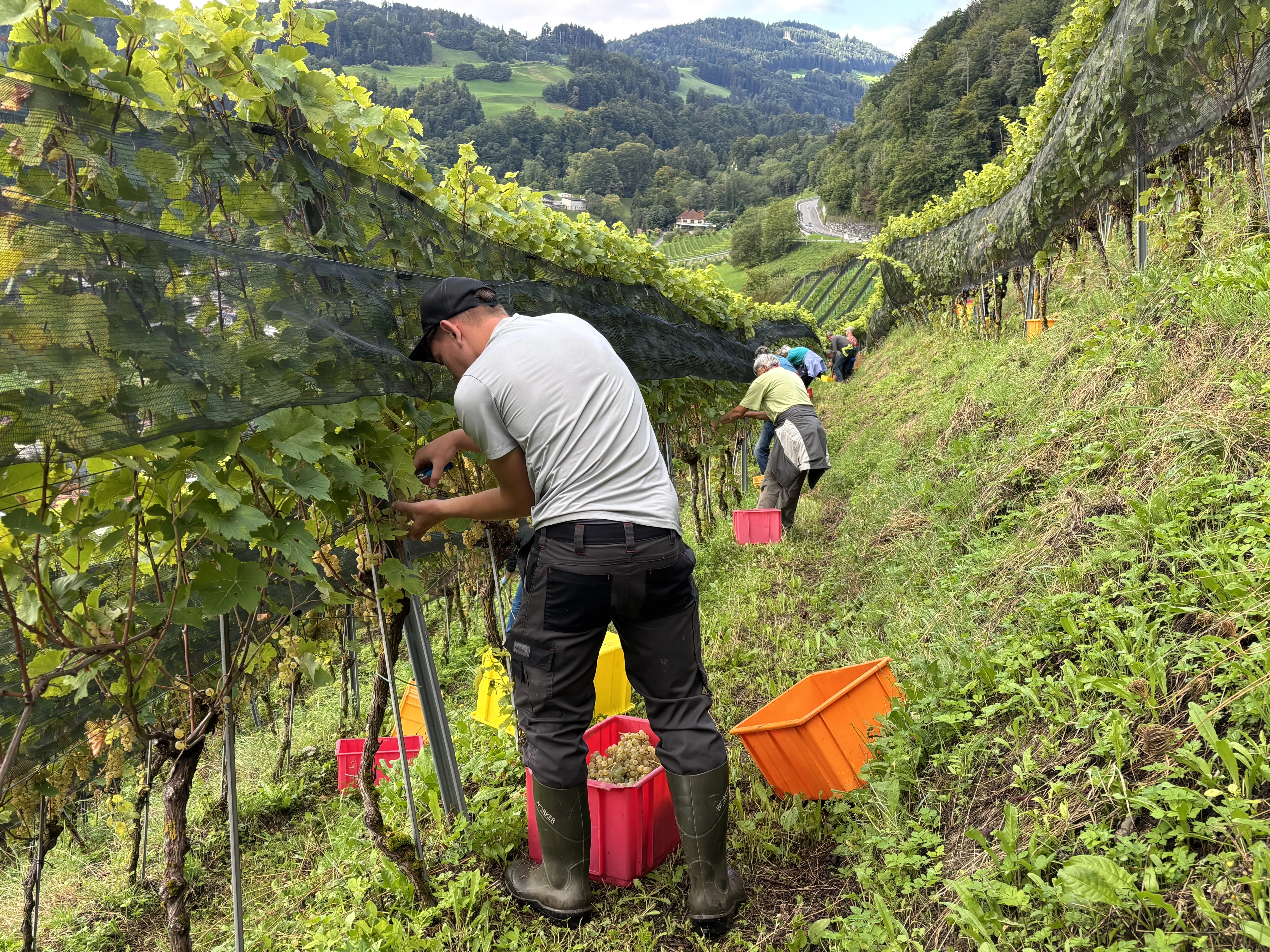 Als biologisch dynamisch funktionierendes Weingut sind wir selber ein kleiner Mikrokosmos geworden mit einem ganz eigenen Mikrobiom: Milliarden von Bodenlebewesen, Pilzen und Bakterien halten unsere Böden gesund und fruchtbar. Dank der renaturierten und gut vernetzten Biodiversität, kombiniert mit dem Ausbau unserer Mischkulturen, leben zig Millionen Insekten mit uns. Diese garantieren uns eine optimale Balance zwischen möglichen Schadinsekten und Nutzinsekten. Zugleich ermöglichen sie das Überleben von vielen anderen Tieren, die mithelfen unsere Ressourcen zu schonen: Fledermäuse, Mauswiesel, Eidechsen und Ringelnattern, Vögel oder andere grössere Wildtiere. Sie alle helfen entscheidend mit, unsere internen Lebenskreisläufe zu stärken und gesund zu halten. Und wir als Team von 11 motivierten Menschen versuchen begleitend, diese Lebensgrundlagen für alle "Mitarbeiter" mitzugestalten und sicher zu stellen. Dazu gehört die ausgewogene Biodiversitätspflege genauso wie der angepasste Rebschnitt, das Herstellen und Ausbringen des eigenen Kompost oder Pflanzenstärkungsmitteln, die individuellen Pflegemassnahmen während der Vegetationsphase, das Ernten der verschiedenen Trauben- Früchte- Nüsse- und Getreide, oder das schonende Vinifizieren unserer Charakterweine.